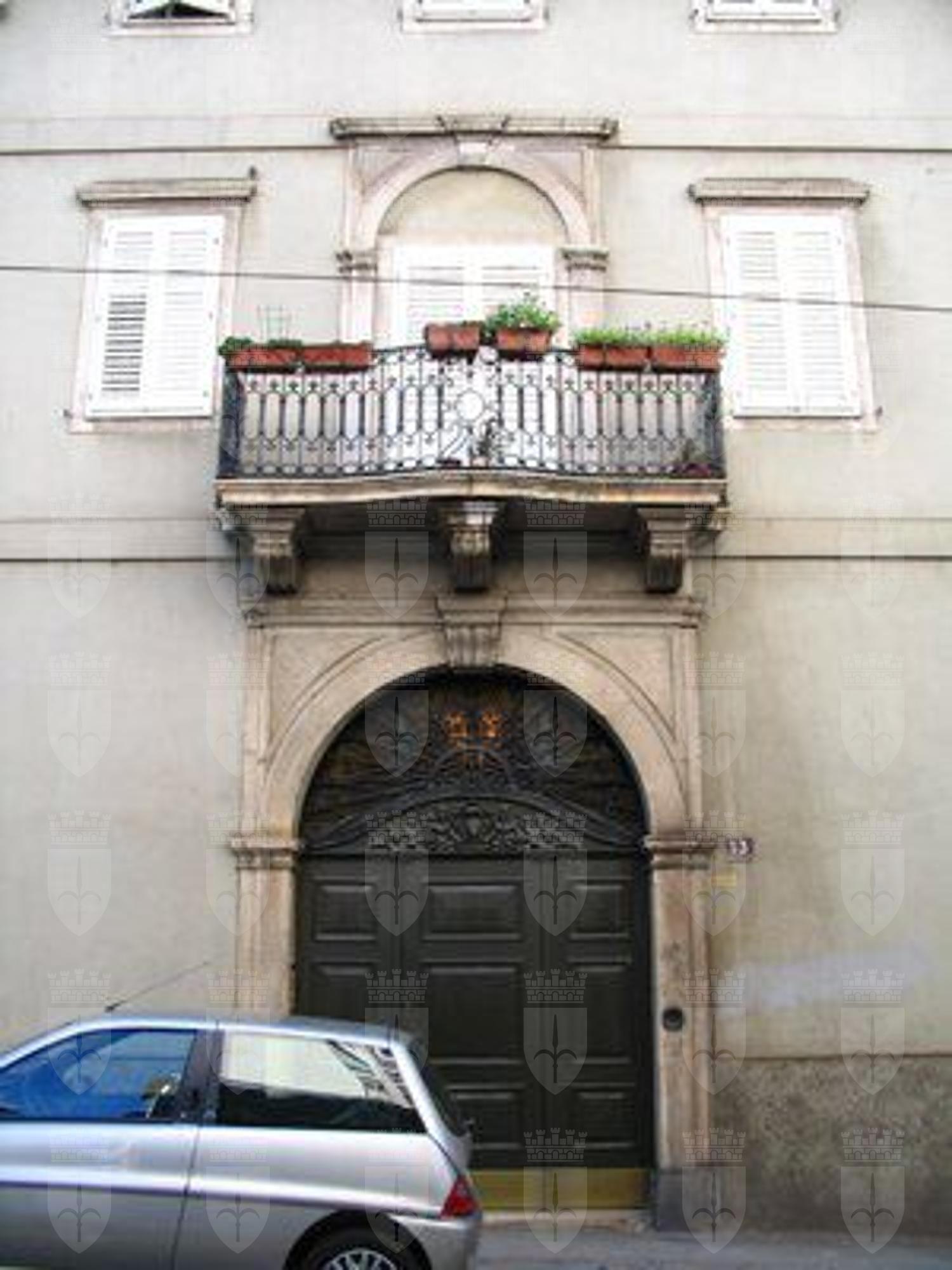 L'immobile, costruito alla fine del XVIII secolo in stile eclettico, si trova in Via Martiri della Libertà, già Via Commerciale Vecchia. La vecchia strada regia, tracciata sul pendio del monte fino ad Opicina, venne aperta nel 1779 per agevolare il trasporto delle merci verso l' Italia e la Germania (Generini). Tutelato principalmente per le caratteristiche architettoniche del prospetto, cui si fa specifico riferimento nel decreto di vincolo, l'immobile viene definito come tipico esempio di edificio del Settecento triestino con funzioni residenziali e commerciali. Il provvedimento di vincolo è limitato alla facciata principale.