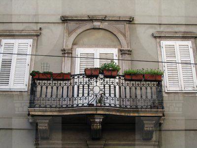 BALCONE (esterno) Balcone con ringhiera in ferro battuto. MENSOLE (esterno) Tre mensole a voluta sostengono il balcone del primo piano.