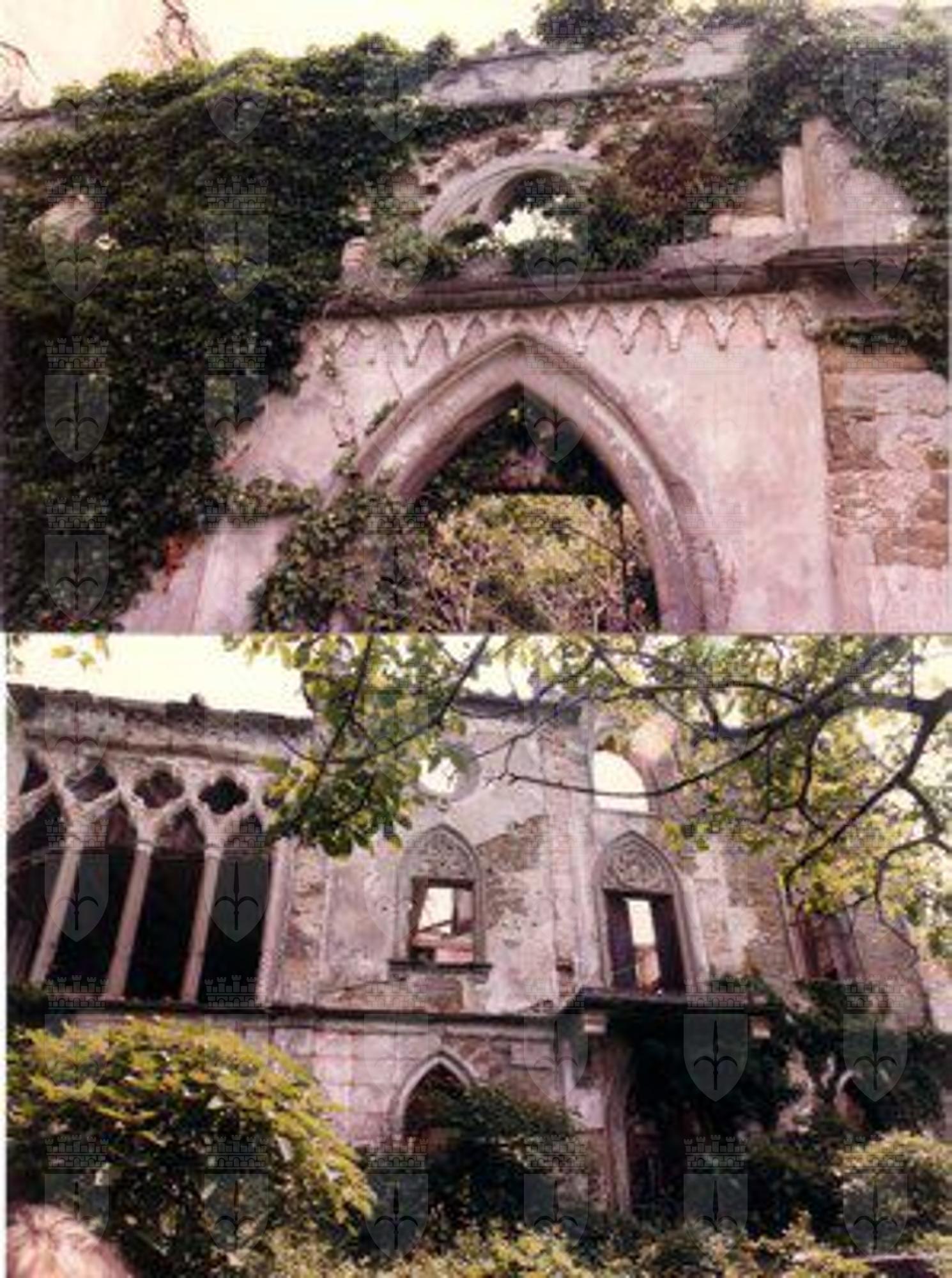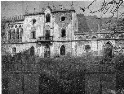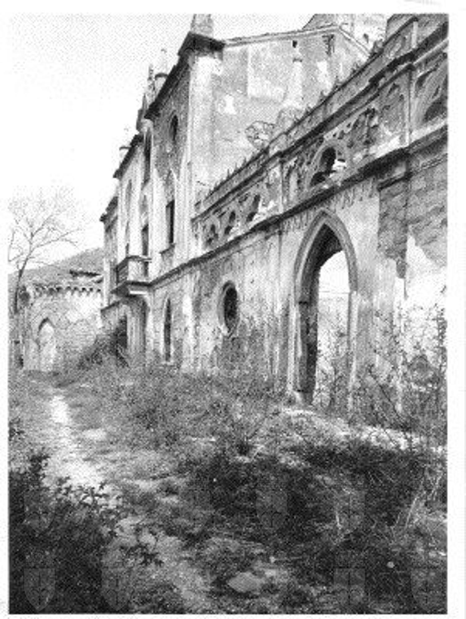 Il complesso in origine era costituito dalla villa, dalle scuderie e da quattro edifici rurali limitati da alte e massicce mura di cinta. La villa, realizzata in stile gotico tardo, poggia su bastioni del Cinquecento in origine merlati. La facciata principale, ripartita in tre zone da lesene, è ornata da finestre gotiche e ad occhio, rosoni in pietra arenaria, quadrifore ad imitazione del gotico fiorito veneziano e pinnacoli squadrati sopra al cornicione. La parte centrale della facciata presenta al piano terra un portale archiacuto, e al primo piano un poggiolo. Al centro del secondo piano c'è una finestra ogivale sormontata da una ghimberga che si eleva sopra al cornicione. Il tetto è crollato in buona parte della costruzione. Nella parte posteriore della costruzione si eleva una torretta belvedere. Il complesso è completato da muraglioni di contenimento a forma di bastioni medievali. All'interno sono distribuite quattordici stanze. Al pianterreno vi è un salone con caratteristico focolare, mentre nella sala con le quadriforme al primo piano si trova un caminetto. I pavimenti di alcune stanze sono realizzati con mattonelle di ceramica dipinte a mano, altri in rustico o mosaico. Sulle pareti rimangono tracce di decorazioni ad affresco e di fregi ornamentali in stucco. Le finestre avevano vetri policromi e piombati.
