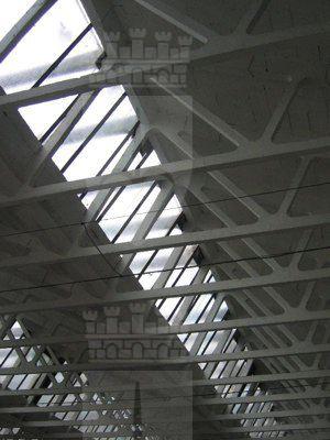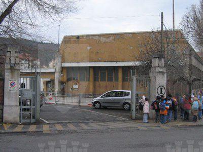 L'edificio, costituito da due volumi di altezza diversa, presenta tre fronti rifiniti ad intonaco ed uno, invece, in mattoni faccia a vista intervallati da fasce orizzontali in pietra. La composizione di questo prospetto sul viale Sanzio, inoltre, viene scandito verticalmente da paraste rivestite in pietra. Agli angoli sono collocate colonne, anch'esse rivestite con lastre lapidee, che terminano con elementi cilindrici di forma e dimensioni diverse. Sempre su questo fronte si sviluppa un basamento lapideo trattato a bugnato, la cui altezza varia con la pendenza dell'asse stradale, fino a diventare un muro in conci lapidei e mattoni che costituisce il limite dell'area rispetto alla strada. I serramenti sono metallici con specchiature, alcuni tamponati da una griglia metallica, mentre al di sotto della copertura diventano solamente dei piccoli fori quadrati. Anche i lati corti presentano paraste che si alternano ad aperture a tutta altezza con serramenti in metallo verniciati. Sul prospetto del volume più basso su via San Cilino viene ricavato l'ingresso alla zona uffici, coperto da una mensola lapidea. Il fronte lungo interno è caratterizzato da una serie di forature regolari ed omogenee, con serramenti metallici, mensole in pietra e avvolgibili verdi, e da una bussola d'ingresso, anch'essa metallica con vetratura opaca. A livello della linea di gronda si articola una cornice lapidea liscia, in aggetto, che sottolinea l'attacco della copertura. Questa risulta essere piana nel volume più basso, mentre nell'altro è costituita da una sequenza di capriate a shed in cemento verniciate di bianco, con lucernai su una delle falde inclinate. Sui due lati corti si innalza un timpano trapezoidale, intonacato della stessa tonalità delle facciate, e con un profilo lapideo sui bordi. Vi è anche un camino di forma regolare a base quadrata piuttosto alto, con griglia a coda di rondine. La copertura è completata da un sistema di gronda e pluviali in lamiera verniciata. Il pavimento esterno è asfaltato, mentre quello interno è in battuto di cemento. L'edificio è rialzato leggermente rispetto la quota del piazzale per mezzo di un marciapiede in cemento. Le pareti interne, sui due lati lunghi, sono intonacate in grigio nella parte inferiore.