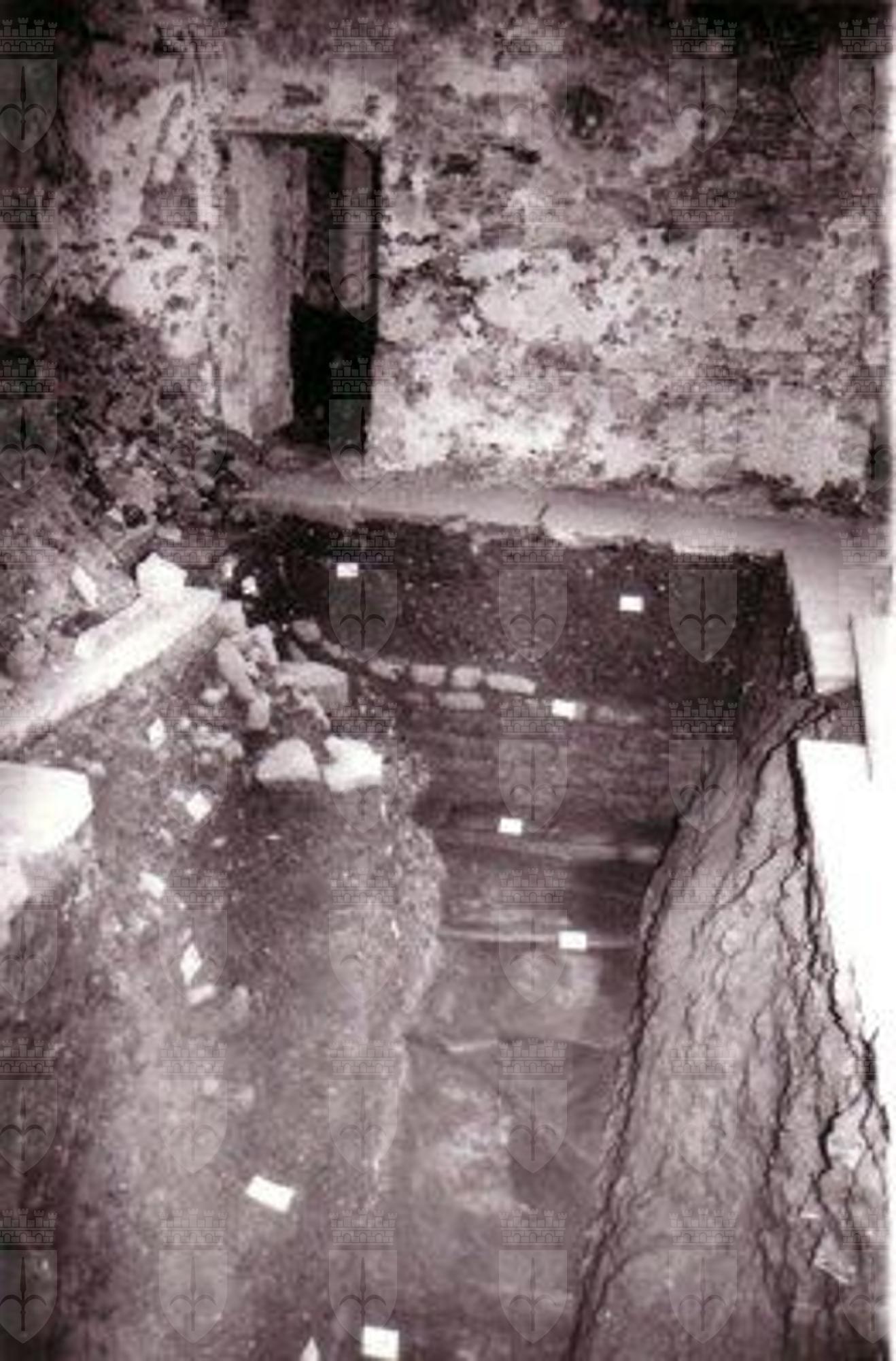 Durante le opere di ristrutturazione dell'edificio sito al civico n. 1 di Piazzetta S. Lucia eseguite nel 1996 sono stati condotti saggi geoarcheologici che hanno interessato i principali ambienti del pianterreno, in precedenza occupati da due esercizi commerciali. Le indagini hanno riportato alla luce strutture murarie messe in relazione con analoghi resti rinvenuti nella stessa Piazzetta S. Lucia e in via Ss. Martiri agli inizi del '900 e nel corso anni 70, nonché con le testimonianze archeologiche scoperte nel 1995 nell'ambito degli scavi realizzati all'interno di Palazzo Vicco (Curia Vescovile). L'analisi comparata dei manufatti ha consentito di ricondurre le strutture emerse dagli strati meno profondi a complessi trecenteschi, forse identificabili con l'ospizio e la chiesetta dell'Annunciata. Sotto il vano sinistro dell'edificio (Ex Ristorante Parangal) è stato inoltre individuato un muro in grossi conci di arenaria, sbozzati grossolanamente e legati con malta, interpretato come muro perimetrale di un'area cimiteriale datata al tardo medioevo, in parte distrutta dagli scavi per la rete fognaria realizzati negli anni settanta; entro il perimetro indagato sono state riconosciute quattro tombe. A una fase di frequentazione assai più antica è stata attribuita una struttura muraria, comune ai vani di entrambi gli ex-locali commerciali, la cui base è risultata insistere sulla crepidine di una strada di epoca romana. Il tratto di percorso stradale, portato alla luce in ottimo stato di conservazione, risulta pavimentato in lastre di arenaria irregolari e presenta una larghezza di 3,60m. Oltre alla crepidine meridionale, in corrispondenza del margine settentrionale del vano sinistrof è stata riconosciuta la crepidine opposta e un muro realizzato a margine della medesima. La diversa tecnica edilizia riscontrata nei manufatti posti ai lati del percorso ha permesso di distinguere strutture murarie di mero contenimento da altre riconducibili a edifici abitativi collocati in affaccio alla strada. In modo particolare, la raffinata composizione delle murature lato monte (conci squadrati legati con abbondante malta), insieme all'individuazione nel vano destro (Ex Pizzeria Antica mormorazione) di una falda di scarico ricca di malte, intonaci con decorazioni a girali e resti di contenitori ceramici per il trasporto e la conservazione delle derrate alimentari, hanno consentito di intuire la presenza di edifici signorili con annessi produttivi; l'epoca di dismissione, in base ai materiali rinvenuti, è stata datata al IV-V secolo d.C.