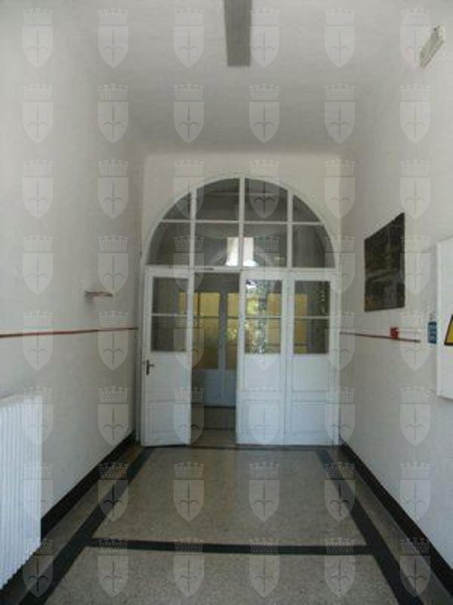Sulla facciata principale esposta a sud-ovest, una scala in pietra con balaustra metallica verniciata, disposta in maniera simmetrica rispetto al prospetto, permette di raggiungere il piano terra rialzato e l'ingresso principale, posto al centro della facciata. Un piccolo basamento in muratura di pietra arenaria a vista sottolinea lo stacco del fabbricato dal terreno sistemato. Un ulteriore abbassamento in lastre di pietra arenaria, posto a correre lungo l'intero perimetro del fabbricato, all'altezza del solaio del piano terreno, protegge l'intonaco dagli agenti atmosferici. Un finto bugnato liscio ad intonaco segna il livello del piano terreno ed è delimitato superiormente a un marcapiano modanato ad intonaco. La restante parte della facciata è trattata ad intonaco liscio, sino alla fascia di coronamento, costituita quest'ultima da una modanatura in elementi di pietra arenaria. Gronde e pluviali sono in lamiera. La copertura a falde presenta un manto in coppi curvi uso Trieste ed una banchina in pietra. Solo il corpo aggiunto, disposto su un unico livello fuori terra, non presenta fascia di coronamento e lascia in vista i puntoni lignei di copertura con il relativo tavolato. Il portone di accesso, posto in posizione assiale sulla facciata principale, si presenta a due ante vetrate lignee più sopraluce semicircolare vetrato. Le specchiature vetrate risultano protette da elementi decorativi in ferro battuto. I serramenti del piano terra presentano doppie ante vetrate lignee verniciate in colore bianco a otto specchiature, con sopraluce vetrato apribile a vasistas Esternamene gli elementi oscuranti uso Trieste completi di lunetta superiore in legno verniciato verde, risultano montati su una controcassa esterna. Al primo piano i serramenti doppi lignei a sei specchiature, con anta esterna montata su controcassa lignea, sono incorniciati da elementi squadrati e bulinati in pietra bianca, con architrave modanato e gocciolatoio a protezione degli agenti atmosferici. All'ultimo piano i serramenti, dello stesso tipo di quelli del primo livello, risultano semplicemente incorniciati da elementi in pietra bianca bulinata; permangono in alcuni casi gli oscuranti esterni uso Trieste in sostituzione delle ante vetrate esterne dei serramenti. All'interno nell'atrio di ingresso un grande serramento ligneo vetrato con sopraluce semicircolare separa la zona di accesso dal corridoio interno. I pavimenti delle parti comuni sono in battuto di cemento e graniglia, mentre le murature trattate ad intonaco presentano un abbassamento in smalto murale. La scala di accesso ai piani superiori presenta gradini in pietra bianca bocciardata, con parapetto metallico e corrimano ligneo verniciato al naturale. I serramenti interni delle aule, originali lignei a doppia anta a sei specchiature opache, risultano verniciati in color crema. Le aule presentano pavimentazione in parquet ligneo disposto a spina di pesce.