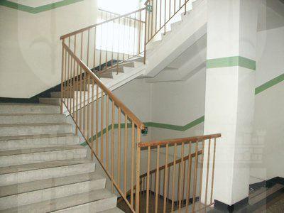 Il fabbricato, posto ai margini del rione di Roiano, dalle linee architettoniche chiaramente risalenti al ventennio fascista, delinea con la sua pianta ad "L" i fronti stradali sulla Via delle Ginestre e sulla Via Montorsino. Su via dei Giacinti corre il muro di recinzione del cortile di pertinenza del complesso scolastico. L'edificio presenta quattro piani fuori terra, più un piano seminterrato; nel cortile di pertinenza un corpo edilizio monopiano assolve alle funzioni di palestra, collegata a mezzo di un apposito passaggio coperto al fabbricato principale. La pianta presenta due vani scala, posti agli estremi del braccio lungo della "L" e collegati da un lungo corridoio affacciato sulla Via Montorsino. Le strutture portanti verticali e orizzontali sono in calcestruzzo armato, la copertura è piana. Le scale sono di tipo misto; a tre rampe quella principale, con rampe laterali appoggiate su travi inclinate in calcestruzzo armato e rampa centrale appoggiata su putrelle metalliche; quella secondaria semplicemente del tipo appoggiato su putrelle metalliche.