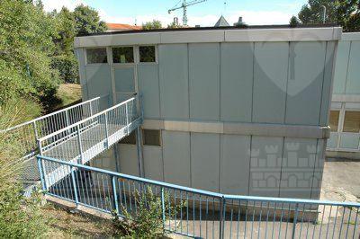 L'edificio sorge nel quartiere di Chiadino su lotto di pertinenza recintato a mezzo di inferriate metalliche verniciate tipo orsogrill. La pianta è a forma irregolare distribuita su un alzato di due livelli. Il piano terra è aperto sul prospetto di Via Dei Mille in corrispondenza di un ingresso secondario, l'accesso principale è collocato invece sul retro del fabbricato all'altezza del primo piano. La struttura edilizia è in cemento armato e latero cemento. La superficie delle facciate, con basamento rifinito ad intonaco grezzo, è rivestita da pannelli sandwich con superficie esterna in materiale plastico colorato; le finestre vetrate presentano telaio in alluminio. La copertura è piana, con rivestimento in guaina bituminosa.