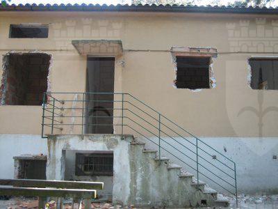 Facciate rivestite in intonaco liscio con una fascia di colore bianco che corre lungo il basamento e una tinteggiatura marrone chiaro sul resto della superficie muraria. Le aperture presentano una forma rettangolare. Il corpo edilizio posto sul retro è fiancheggiato da un ballatoio pavimentato con lastre in porfido e protetto da una ringhiera in ferro saldato. L'ingresso principale è preceduto da una scala con gradini in pietra artificiale e ringhiera in ferro saldato, verniciata di colore verde. L'edificio si presenta privo di molti dei suoi elementi architettonici a causa di alcuni lavori di manutenzione e ristrutturazione complessiva.