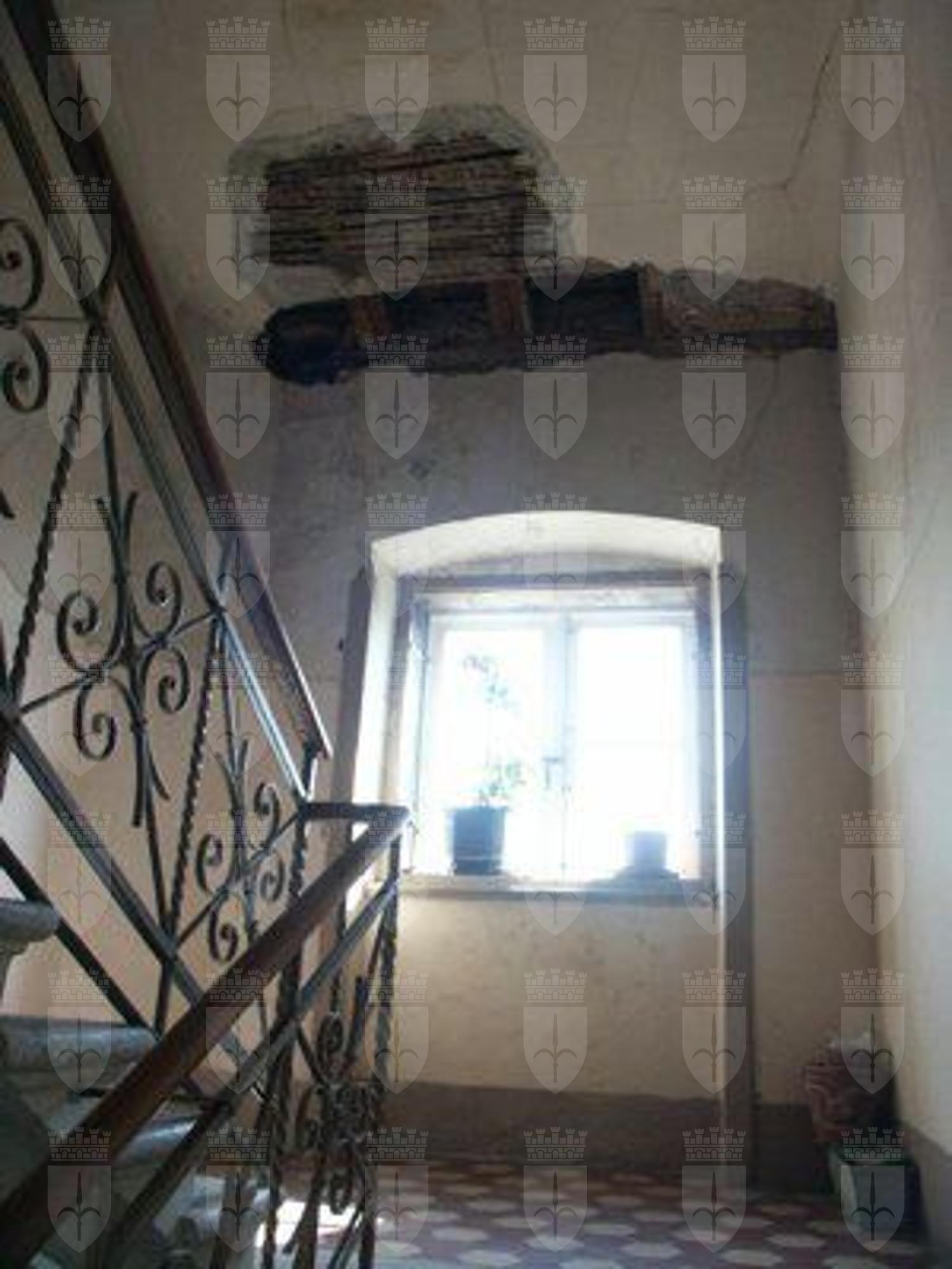 Le facciate esterne, trattate in modo omogeneo su tutti i lati, sono rifinite ad intonaco liscio colore grigio; un basso basamento in conci di pietra arenaria sbozzata a corsi regolari orizzontali evidenzia la pendenza dello spazio aperto che si apre davanti all'ingresso. Sul prospetto principale un marcapiano modanato rifinito ad intonaco segna il piano di appoggio di una serie di lesene trattate ad intonaco, che segnano il ritmo verticale della facciata, sino alla sommità. Un sottile marcapiano quadro rifinito ad intonaco separa le finestre dell'ultimo piano, più piccole della altre. A livello del coronamento le lesene si raccordano alla banchina in pietra a mezzo di elementi decorativi a forma di testa leonina. Finti parapetti in pietra con balaustrini arricchiscono la facciata principale in corrispondenza della prima file di finestre, sulla sinistra. I serramenti vetrati esterni sono tutti lignei a doppia anta a sei specchiature, con cornice in pietra bianca a definizione del foro architettonico; al piano terra gli oscuranti esterni sono del tipo a libro, verniciato in color bianco montati in luce; il serramento vetrato di ingresso principale in legno verniciato naturale è a due ante con sopraluce; a protezione delle specchiature vetrate vi sono due inferriate decorative in ferro lavorato. Gli oscuranti lignei esterni uso Trieste, montati su controcassa esterna, sono verniciati in color bianco al primo piano, al naturale al piano secondo e terzo. All'ultimo piano i serramenti sono più piccoli, privi di oscurante. Le gronde in lamiera zincata si innestano su pluviali in pvc. Il manto di copertura è in coppi curvi rossi uso Trieste. All'interno il vano scala presenta superfici semplicemente intonacate in color bianco, con abbassamento in smalto murale color senape. La scala in pietra bocciardata presenta un parapetto decorativo metallico, con corrimano ligneo verniciato naturale. Il pavimento in corrispondenza dei pianerottoli presenta piastrelline colorate in cotto.