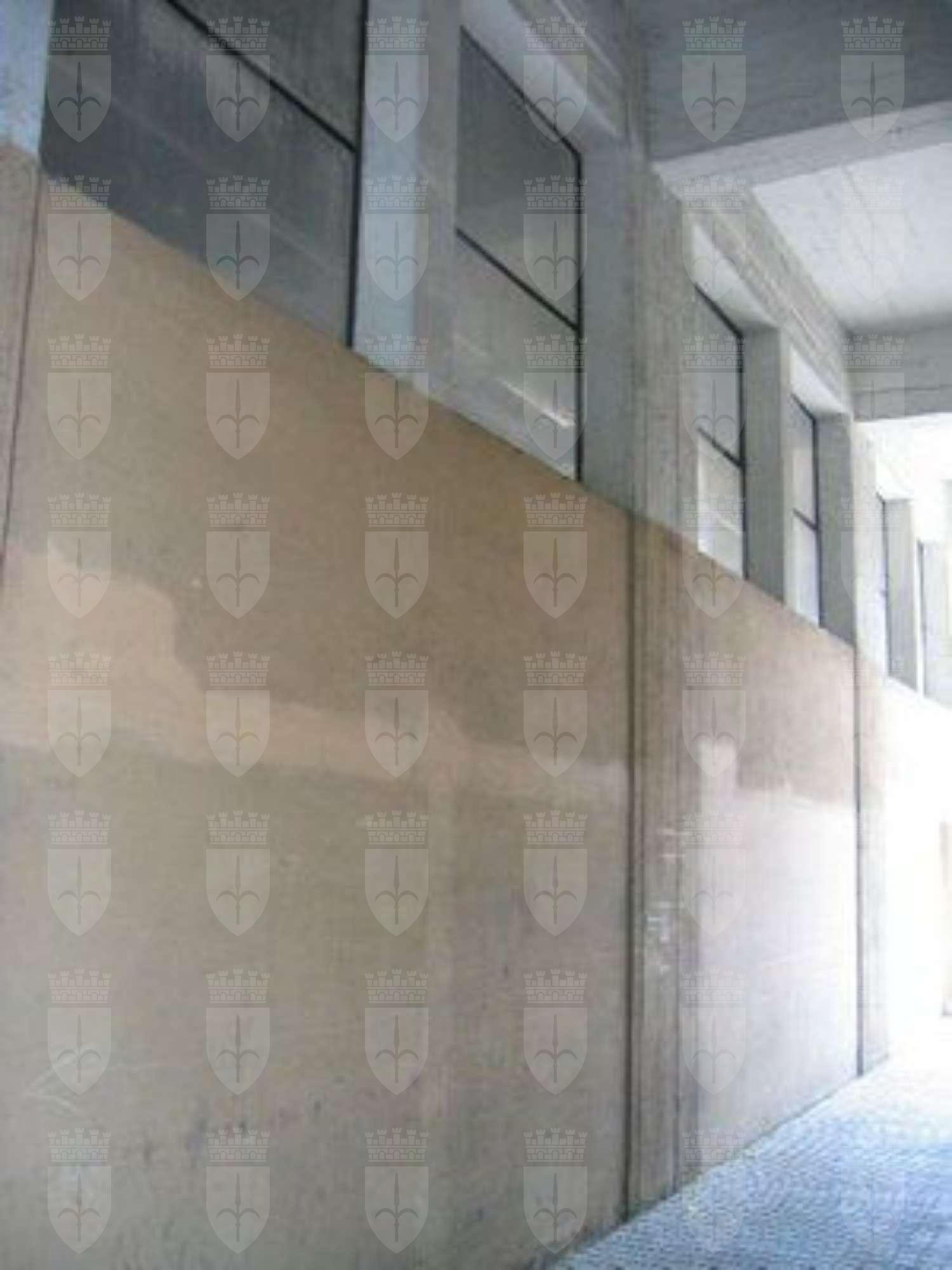 L'edificio presenta tutti i fronti in cemento a vista, eccetto il livello del pianoterra verso il piazzale che è rifinito ad intonaco tinteggiato color crema. Il passaggio porticato presenta una tinteggiatura di due tonalità differenti: color crema nella parte inferiore, bianca in quella superiore in corrispondenza delle forature. La copertura piana è completata da un sistema di grondaie e pluviali verniciati. La composizione dei prospetti viene scandita orizzontalmente da fasce in cemento a vista e da finestrature a nastro in metallo, che si sviluppano per tutta la lunghezza dei fronti. Lo spazio antistante gli ingressi del primo livello è delimitato da un parapetto in cemento che presenta alla base una sequenza di forature rettangolari. Al pianoterra gli infissi metallici sono costituiti da serramenti a tutt'altezza con specchiature vetrate sul fronte verso il piazzale, da porte a doppio battente su quello laterale. Anche le finestrature continue presentano serramenti metallici verniciati di colore scuro. Gli infissi del secondo piano sono stato sostituiti con serramenti in alluminio. All'interno del complesso si estende un'ampia area adibita a parcheggio, con un pavimento in cemento; l'accesso all'interno avviene alla stessa quota del piazzale.