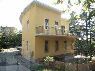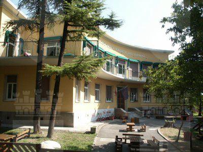 Il fabbricato, del tipo isolato su lotto di pertinenza, si inserisce in una zona periferica della città di Trieste, caratterizzata da alti fabbricati residenziali posti su lotti di pertinenza con giardino. Il corpo di fabbrica stereometrico, sviluppato su due piani fuori terra più un livello interrato, è progettato su una pianta a forma di settore circolare ed espone la facciata principale verso sud. La composizione di facciata sottolinea gli elementi orizzontali: la fascia basamentale, il balcone del primo piano e la linda in aggetto. La struttura è in muratura portante, con solai in laterocemento e balconi sporgenti con solette in calcestruzzo armato. La copertura è piana. La distribuzione interna avviene a partire da un atrio passante posto in posizione centrale, lungo un corridoio ad arco che attraversa tutta la lunghezza del fabbricato. Il vano scala, posto in prossimità dell'affaccio nord, è accessibile direttamente dall'atrio di ingresso. Le aule della scuola materna sono posizionate al primo piano, con affaccio a sud, sulla terrazza. Al piano terra sono sistemati gli uffici ed i principali spazi collettivi. Il piano interrato ospita tutte le funzioni di servizio e gli apparati tecnologici.