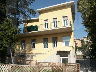 ISCRIZIONE (esterno) Sull'affaccio principale, nello spazio compreso tra le porte-finestra del primo piano e l'aggetto del coronamento, a caratteri stampatello bianchi rifiniti in intonaco è riportata la seguente dicitura: "CASA DELLA MADRE E DEL BAMBINO".
