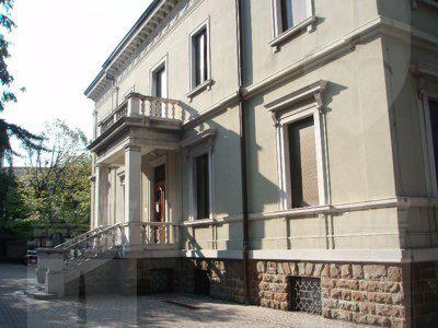 Il manufatto denominato "Villa Prinz", che ospita la III Circoscrizione comunale e l'Istituto Regionale per la Storia del Movimento di liberazione nel Friuli Venezia Giulia, sorge all'interno di un complesso di scuole statali con relativi fabbricati accessori. Tale lotto è delimitato a monte da Salita di Gretta. L'accesso all'area avviene attraverso un cancello metallico, ricavato all'interno del muro di cinta e posto ad una quota inferiore rispetto all'asse stradale. All'interno del giardino alberato il manufatto è preceduto da una serie di gradoni con pavimentazione a tasselli ondulati. Il fabbricato presenta una pianta regolare rettangolare e si eleva per tre piani, uno dei quali seminterrato. La struttura portante è in muratura e la copertura è inclinata a due falde con rivestimento in coppi. I fronti dell'edificio presentano la medesima logica compositiva e gli stessi elementi decorativi. La facciata posteriore è collocata ad una quota leggermente inferiore rispetto a quella dell'ingresso, pertanto vi è una scala esterna in pietra che raccorda i due terrazzamenti.