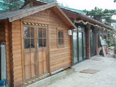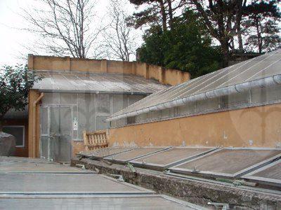 L'edificio principale a due piani presenta una finitura delle facciate ad intonaco di colore arancione chiaro, con prospetti compositivamente omogenei. Le aperture sono tamponate da serramenti ad anta di colore bianco, completati da oscuranti verniciati di verde, griglie metalliche bianche e da cornici lapidee. Alcuni fori sono caratterizzati da davanzali in pietra e tettucci intonacati della stessa tonalità dei fronti. L'ingresso è sottolineato da una bussola con copertura inclinata e serramenti metallici sagomati di colore verde; la struttura è collegata ad un pergolato ligneo, sempre tinteggiato di verde. Il tetto è a falde con manto di rivestimento in coppi e mensole lapidee in corrispondenza del livello sottogronda; un sistema di grondaie e pluviali in lamiera consente lo smaltimento delle acque meteoriche. La facciata parallela all'ingresso è decorata con una meridiana dipinta nel mezzo. La costruzione secondaria è realizzata in muratura a vista con mattoni rossi sovrapposti; la copertura è a falde con manto di rivestimento in coppi e grondaie in lamiera. I serramenti sono sempre di colore verde con oscuranti, mentre le portefinestre che consentono l'accesso sono dotate di un sopraluce vetrato. A fianco sorge un locale accessorio in legno, con struttura lignea costituita da assi sovrapposte e copertura inclinata; gli infissi sono lignei non tinteggiati. Le serre presentano dei fronti rifiniti ad intonaco di colore giallo scuro, mentre le ampie zone vetrate e le coperture inclinate sono state realizzate in metallo e vetro.