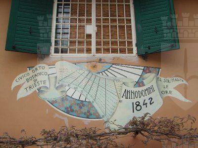PITTURA (esterno): dipinto a colori, accostato alla meridiana inserita nel prospetto meridionale del corpo principale, raffigurante un sole e una pergamena con grafici per il calcolo del tempo e alcune scritte, tra queste:"CIVICO ORTO BOTANICO DI TRIESTE", "ANNO DOMINI 1842" e l'espressione dialettale "EL SOL MAGNA LE ORE". INCISIONE (esterno): su una delle lastre lapidee che costituiscono la pavimentazione posta in corrispondenza dell'ingresso all'area è stata incisa una rosa dei venti orientata secondo i punti cardinali. STATUA (esterno): busto in pietra su piedistallo squadrato di Bartolomeo Biasoletto, collocato, in onore del botanico dignanese, all'interno di un'aiuola nel livello più basso del giardino.