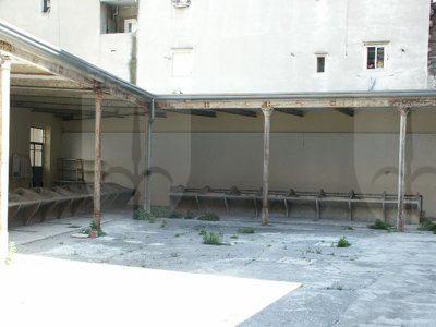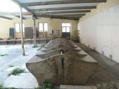 Il fabbricato monopiano disposto a "L" è costituito principalmente da una tettoia a struttura metallica delimitata sul lato strada da una facciata in muratura che si posiziona in continuità con i fabbricati attigui. Un piccolo corpo di fabbrica, nei pressi dell'ingresso ad una delle estremità del lotto ospita i pochi spazi chiusi necessari alla gestione della struttura ora abbandonata. Lo spazio racchiuso tra la struttura della tettoia e il muro del fabbricato esistente sul lotto limitrofo lungo il lato est, costituisce il cortile di pertinenza dell'antico lavatoio.