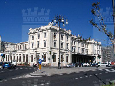 La struttura della stazione è caratterizzata da una planimetria a "U", con i prospetti principali che si affacciano uno in via Ottaviano Augusto, rivolto verso il mare e uno su via Giulio Cesare. La facciata rivolta verso il mare è costituita da due corpi laterali di tre piani e un corpo centrale leggermente arretrato, sempre di tre piani. Nei corpi laterali, al pianterreno, semicolonne in stile neorinascimentale e neomanieristico fiancheggiano le finestre centrali dei corpi aggettanti. Al primo piano, paraste incorniciano le aperture centrali. Frontoni triangolari concludono in alto i corpi laterali. Sul tetto corre una balaustra con pilastri ornati da cartigli agli angoli. Il corpo centrale arretrato presenta, al pianterreno, paraste a bugnato e decorazioni vegetali sotto ai frontoni delle finestre. Il piano superiore è caratterizzato da lesene lisce e cimase lineari a coronamento delle finestre. Al centro si eleva un timpano a semicerchio sormontato da un elemento scultoreo a conchiglia. Il fronte che si affaccia su via Giulio Cesare presenta, al centro, l'ingresso principale alla stazione ed è caratterizzato da due corpi di solo un piano e una parte centrale sopraelevata di un piano. L'ingresso, sormontato da un ampia finestra termale, è fiancheggiato da due torrette. Presenta episodi decorativi a rilievo ai lati e sopra l'arco centrale. Una cornice a dentelli conclude in alto la facciata.