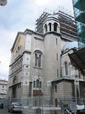 L'immobile sorge sul sito in origine occupato dalla chiesa settecentesca, dedicata a San Spiridione e alla Santissima Trinità, di proprietà della Confraternita Greca-Illirica, autorizzata con decreto del 1751 da Maria Teresa alla costruzione di un proprio tempo. Con la divisione nel 1781 della comunità in due gruppi si distinguono due sedi di culto: la chiesa di San Nicolò per i greci e la chiesa di San Spiridione per la componente serbo-ortodossa. Nel 1861 il tempio di San Spiridione viene demolito in seguito ai lavori di interramento delle saline nell'omonimo Borgo. Già nel 1858 la comunità serbo-ortodossa bandisce un pubblico concorso per la presentazione di un progetto per la nuova chiesa, la cui scelta è affidata all'Accademia delle Belle Arti di Venezia. Tra i sette disegni proposti viene scelto quello dell'architetto Carlo Maciacchini (1818-1899), mentre la direzione dei lavori viene affidata all'ingegnere triestino Pietro Palese (1812-1898). Conclusi i lavori di edificazione nel 1868, il tempio viene benedetto il giorno 20 settembre 1869 dall'archimandrita German Angelic in rappresentanza del patriarca Samuilo Masirevic. Solo nel 1885 viene completata la decorazione musiva da parte della ditta veneziana Murano sulla base dei disegni del pittore milanese Pompeo Bertini; le rimanenti parti decorative vengono realizzate dal milanese Antonio Caremmi. Nel primo progetto l'architetto Maciacchini elabora la facciata principale con l'ingresso su Via San Spiridione, non rispettando le indicazioni della "Patente di Tolleranza" concepita da Maria Teresa nel 1751 e basata sul divieto di aprire il pubblico accesso sulla strada principale per i culti non cattolici; con approvazione dell'agosto 1860 viene concessa la deroga e approvato il disegno originario. L'architetto lombardo, vincitore del concorso per il Cimitero Monumentale di Milano e socio onorario della Reale Accademia di Belle Arti di Brera, concepisce una struttura "in istile bizantino-orientale ed è formata in una croce greca nella sua parte icnografica, avente sugli angoli 4 campanili, che servono a sostegno della gran cupola centrica" (Generini, 1968, p. 320). La decorazione interna raffigura scene cristologiche e immagini relative alla vita del santo titolare della chiesa, che sono riprese anche nella facciata esterna dove sono affiancate da figure di santi scolpite da Emilio Bisi. Lo spazio interno è arricchito da esempi preziosi di suppellettile ecclesiastica, in parte commissionati per la chiesa stessa, in parte donati da illustri personaggi legati alla comunità; all'interno del gruppo si segnalano le diverse icone, quale la "Madonna Hodigitria con angeli", l'altare con paliotto di brozo, quattro candelieri donati da Giovanni Prelog, il dipinto ottocentesco della Crocifissione con argento e pietre preziose e una coppia di piatti d'altare di bottega veneta del XVIII secolo. Il tempio è stato interessato da numerosi interventi di restauro, tra cui nel 1917 la rimozione delle coperture in rame delle cupole. Attualmente si sta completando la fase di pulitura delle superfici esterne.