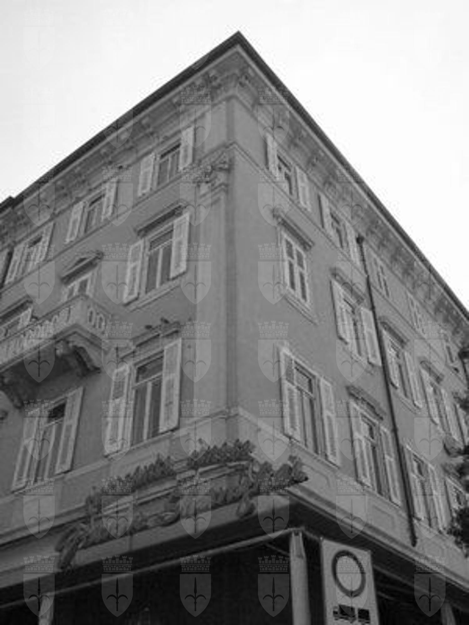 BALAUSTRA (esterno): Balaustra in pietra in corrispondenza dei balconcini del secondo e terzo piano del prospetto principale. LESENE (esterno): Lesene scanalate di ordine gigante con capitello decorato con motivi floreali e teste floreali ad articolare la superficie muraria dell'edificio. CORNICE (esterno): Cornice a mensoloni a coronamento della superficie muraria per tutto il perimetro dell'edificio. LAPIDE (esterno): Lapide recante l'iscrizione "Lascito di Cristoforo Scuglievich nostro grande benefattore, nato a Mostar il 22.IX.1843, morto a Trieste il 9.I.1909" in corrispondenza del portale d'ingresso principale.