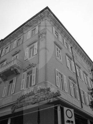 BALAUSTRA (esterno): Balaustra in pietra in corrispondenza dei balconcini del secondo e terzo piano del prospetto principale. LESENE (esterno): Lesene scanalate di ordine gigante con capitello decorato con motivi floreali e teste floreali ad articolare la superficie muraria dell'edificio. CORNICE (esterno): Cornice a mensoloni a coronamento della superficie muraria per tutto il perimetro dell'edificio. LAPIDE (esterno): Lapide recante l'iscrizione "Lascito di Cristoforo Scuglievich nostro grande benefattore, nato a Mostar il 22.IX.1843, morto a Trieste il 9.I.1909" in corrispondenza del portale d'ingresso principale.