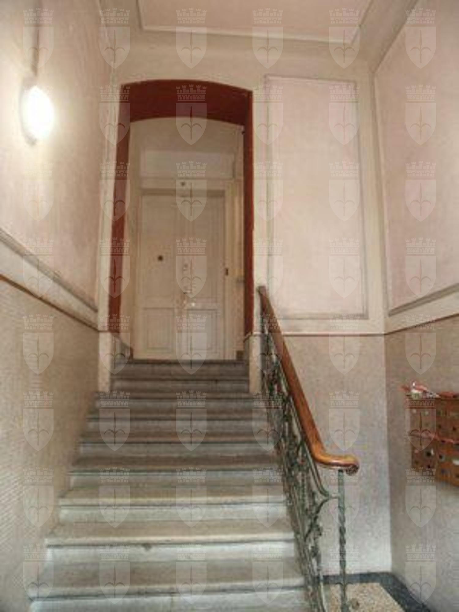 I progetti dell'elegante edificio d'angolo, compreso tra Via Alfieri e Via Canova, risalgono al 1904, allorquando il Magistrato Civico, con decreto n. 54130/ 04, concesse, all'impresa di costruzioni Picciola & Benedettich, progettisti dello stesso, di erigere un fabbricato di cinque piani nella zona caratterizzata dall'imponente presenza dell'Istituto dei Poveri. Lo stile eclettico del caseggiato, tanto caro all'architettura triestina del primo Novecento, il bugnato a vista del mezzanino, gli spigoli in pietra bianca degli angoli prospettanti l'incontro tra le due vie, i timpani decorativi delle finestre poste al primo livello, impreziosiscono l'abitazione conferendole dignità ed importanza. Nel 1905 vennero apportate delle leggere modifiche interne ai progetti originali, mantenendo inalterate le facciate esterne.