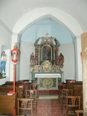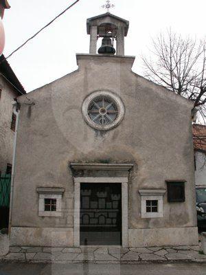 ISCRIZIONE (esterno): L'architrave del portale di accesso riporta l'incisione con la data 1789. STEMMA (esterno): In sommità della piccola torre campanaria è incisa l'alabarda di Trieste. ELEMENTO ORNAMENTALE (esterno): Sopra la croce in sommità della facciata è posto un indicatore di direzione del vento a forma di gallo in ferro battuto. DIPINTI (interno): Appesi alle pareti dipinti su tavola lignea raffigurano la Via Crucis. ISCRIZIONE (interno): In chiave di volta sopra l'arco che separa l'altare dall'aula, un'iscrizione riporta le parole "Leto Gospodovo 1999", probabile data risalente all'ultima risistemazione interna. ELEMENTO ORNAMENTALE (interno): Un crocifisso con simboli dell'opera e del lavoro dell'uomo è appeso alla parete d'ingresso. STATUA (interno): Una statua della Madonna con Bambino è posizionata nella nicchia in corrispondenza della finestra sul lato sinistro. DIPINTO (interno): Un dipinto su tavola con cornice barocca raffigura la sacra famiglia protetta dall'alto da Dio e dallo spirito santo in forma di colomba.