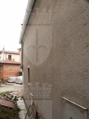Il piede dell'edificio risulta circondato da un selciato alla palladiana in pietra calcarea con cippi miliari agli angoli; da qui si eleva un abbassamento in pietra bianca a protezione della muratura trattata ad intonaco liscio, che risulta omogenea sino alla copertura. La facciata principale perfettamente simmetrica presenta un basso portale in legno lavorato a riquadri, incorniciato da erte e architrave in pietra calcarea bocciardata. Un elemento sporgente orizzontale in pietra bianca bocciardata, modanato ma privo di gocciolatoio, protegge seppur di poco l'ingresso dagli agenti atmosferici battenti. Due piccolissimi fori finestra si posizionano ai lati dell'ingresso e sono definiti da erte e architravi modanati in pietra bianca bocciardata. I serramenti in legno sono protetti da un'inferriata metallica a croce. Al centro della cuspide un rosone con cornice in pietra bianca modanata illumina l'interno. Un'inferriata in ferro verniciato grigio protegge il serramento circolare ligneo vetrato. Una modesta torretta con tettuccio a doppia falda sostiene la campana e una croce con l'indicatore di direzione del vento in ferro battuto. La corda di azionamento della campana passa attraverso le strutture di copertura e scende internamente in corrispondenza dell'ingresso. Una sola finestra rettangolare su ogni lato illumina lateralmente l'aula della chiesa, è protetta da un'inferriata in ferro verniciato e incorniciata da erte in pietra bianca bocciardata. La copertura con il manto in coppi curvi rossi raccoglie le acque piovane nella gronda in metallo verniciato e due pluviali le disperdono nel terreno. Internamente le superfici murarie sono completamente intonacate in color bianco, ad eccezione dell'abside dipinta di azzurro. Una cornice modanata segna l'imposta della volta lungo tutto il perimetro e un arco a sesto acuto delimita lo spazio dell'abside completamente dedicato all'altare. La pavimentazione si presenta in piastrelle di ceramica di metà secolo XX. L'altare in stile barocco risulta abbastanza ricco e preziosamente ornato in contrasto con la semplicità dell'architettura. Due lanterne matalliche rosse su piedistallo sono posizionate ai lati dell'ingresso. Gli arredi sono tutti in legno verniciato naturale.