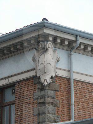 STEMMA (esterno) In corrispondenza degli spigoli del corpo di fabbrica centrale, all'altezza del coronamento, sono posizionati stemmi alabardati della città di Trieste in pietra bianca. ELEMENTI ORNAMENTALI (esterno) Tondi decorativi floreali decorano i prospetti dei volumi laterali, a fianco dei fori architettonici.