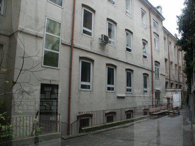 Il 3 agosto 1901, con decreto n. 43237, il Magistrato Civico autorizzava la costruzione della casa ad uso di civica abitazione popolare intitolata a S. de Sandrinelli, sul fondo N. Tav. 1161. I progetti dell'inizio secolo, conservati presso l'Archivio Tecnico del Comune, riportano la firma di Luigi Miani, dirigente il lavoro e De Mottoni, progettista e capo delle arti. L'esteso fabbricato si erge per quattro livelli fuori terra, prospettando la sua elegante facciata, in stile eclettico, sulla via che, nel nome tipicamente triestino, riconduce, etimologicamente parlando, ad un tempo antico quando in quella zona si segnalava la presenza di un ponte. Anzi, secondo lo storico Cavalli, proprio in quell'area scorreva un torrentello che, chiamato Pondares, conferiva all'intera contrada il nome di Pondaresso. L'edificio, ricercato nelle sue decorazioni a lesene e fregi, fu riattato, ad opera dell'arch. Carlo Celli, negli anni Settanta, destinato ad ospitare l'Istituto professionale per il Commercio.