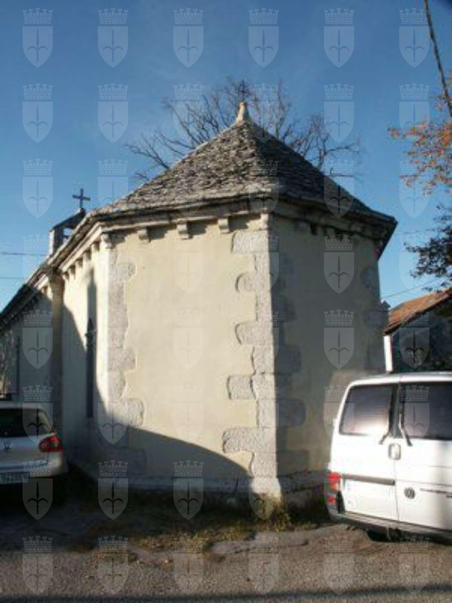 La piccola cappella di S. Rocco, con orientamento nord-ovest - sud-est, si posiziona al centro di uno spazio internamente alla biforcazione di una strada in due percorsi secondari, al margine sud-est del borgo storico di S. Croce. Percettivamente conclude con la propria torre campanaria uno degli assi viari interni al borgo, che si dipartono dalla chiesa principale e dal cimitero. La distribuzione interna è semplice, ad aula, con abside terminale. La composizione seicentesca della facciata raggruppa la torre campanaria e l'ingresso principale in un unico elemento architettonico, che segna la simmetria principale della facciata. La struttura verticale è costituita da muratura portante in pietra bianca sbozzata, posata a corsi irregolari; la copertura a falde è costituita da una struttura lignea a capriate a sostegno di un manto in lastre di pietra calcarea.