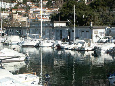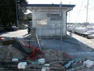 L'edificio monopiano si colloca ai margini dell'interramento di barcola-bovedo e si affaccia direttamente sul porticciolo. La pianta rettangolare allungata espone i lati maggiori a sud-ovest allo specchio acqueo ad a nord est sulla Via Almerigo Grilz e quindi sul giardino retrostante. La struttura in cemento armato presenta una copertura piana con un sopralzo centrale, che permette una migliore illuminazione del vano corrispondente alla sede di un circolo privato. I rimanenti spazi sono suddivisi in piccoli magazzini utilizzati per il deposito delle attrezzature da lavoro dei pescatori.