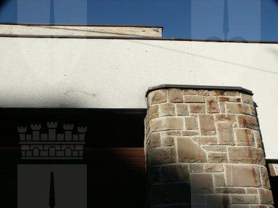 La facciata principale lungo la via Soncini risulta caratterizzante per tutto il fabbricato che presenta una facciata laterale ed una postica completamente prive di elementi compositivi di rilievo e semplicemente rifinite ad intonaco liscio. Sul fronte principale tre setti verticali rivestiti in pietra arenaria, segnano gli spigoli del fabbricato e il salto di quota dei volumi che lo costituiscono, mentre fasce orizzontali in pietra artificiale evidenziano l'orizzontalità della composizione. I volumi, che ospitano locali commerciali, risultano molto aperti sul fronte principale, con serramenti vetrati lignei verniciati al naturale, protetti da serrande metalliche e separati solo da pi lastrature strutturali rifinite in pietra artificiale. Sul lato postico si aprono fori finestra rettangolari con serramenti vetrati lignei a doppia anta verniciati bianchi, protetti da inferriate in ferro battuto incrociate diagonalmente e sottolineati da un semplice davanzale squadrato in pietra artificiale. Un abbassamento in pietra artificiale protegge la parte basamentale della facciata rifinita ad intonaco. Internamente le finiture risultano parzialmente riviste nel corso degli ultimi decenni del secolo XX con intonaci bianchi e piastrella ture ceramiche, parzialmente risultano invece inalterate con marmette di graniglia e cemento e serramenti vetrati lignei verniciati bianchi con specchiature orizzontali acidate.