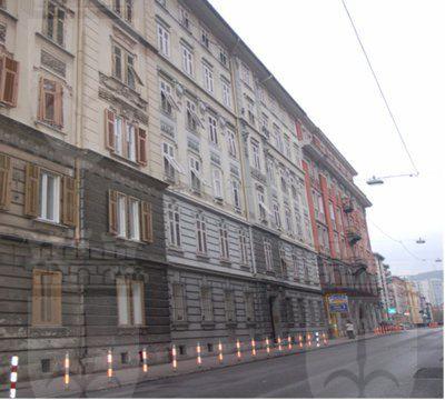 Contemporaneo ad altri sei complessi immobiliari del medesimo isolato, l'edificio viene costruito nella zona di recente urbanizzazione creata dallo sbancamento dei terreni ai piedi del colle di Scorcola; l'area, interessata dalla metà dell'Ottocento dai lavori per la realizzazione della nuova ferrovia cittadina, viene arricchendosi di numerosi edifici multipiano, caratterizzati da un'architettura modernista, essenziale nello sviluppo planimetrico e ricca nella decorazione delle superfici murarie. Il palazzo si affaccia su via Udine, già via Belvedere a ricordo della omonima proprietà distrutta per fare spazio ai nuovi edifici signorili a destinazione residenziale. Il progetto dell'edificio, approvato nel 1905, reca le firme dell'impresa costruttrice "Gobel & Forti", proprietaria del fondo e del "costruttore edile autorizzato" Ferdinando Walenta. In linea con la tipologia architettonica dei coevi palazzi del quartiere, la struttura presente cinque piani fuori terra più soffitta abitabile. La superficie muraria, con basamento rivestito a bugnato liscio, è arricchita da elementi decorativi a rilievo di chiara ascendenza Liberty; motivi floreali e nastri sono collocati in corrispondenza delle specchiature e delle cornici dei fori finestra. L'immobile ha ospitato fino a pochi anni fa la caserma della Guardia di Finanza.
