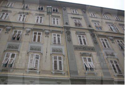 Contemporaneo ad altri sei complessi immobiliari del medesimo isolato, l'edificio viene costruito nella zona di recente urbanizzazione creata dallo sbancamento dei terreni ai piedi del colle di Scorcola; l'area, interessata dalla metà dell'Ottocento dai lavori per la realizzazione della nuova ferrovia cittadina, viene arricchendosi di numerosi edifici multipiano, caratterizzati da un'architettura modernista, essenziale nello sviluppo planimetrico e ricca nella decorazione delle superfici murarie. Il palazzo si affaccia su via Udine, già via Belvedere a ricordo della omonima proprietà distrutta per fare spazio ai nuovi edifici signorili a destinazione residenziale. Il progetto dell'edificio, approvato nel 1905, reca le firme dell'impresa costruttrice "Gobel & Forti", proprietaria del fondo e del "costruttore edile autorizzato" Ferdinando Walenta. In linea con la tipologia architettonica dei coevi palazzi del quartiere, la struttura presente cinque piani fuori terra più soffitta abitabile. La superficie muraria, con basamento rivestito a bugnato liscio, è arricchita da elementi decorativi a rilievo di chiara ascendenza Liberty; motivi floreali e nastri sono collocati in corrispondenza delle specchiature e delle cornici dei fori finestra. L'immobile ha ospitato fino a pochi anni fa la caserma della Guardia di Finanza.