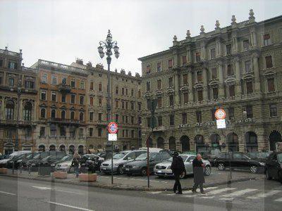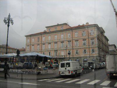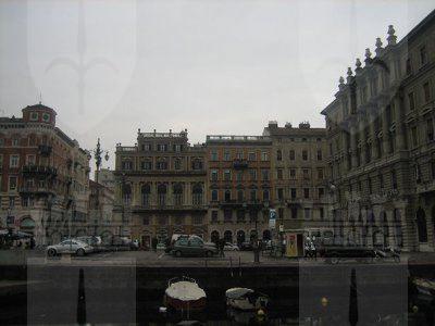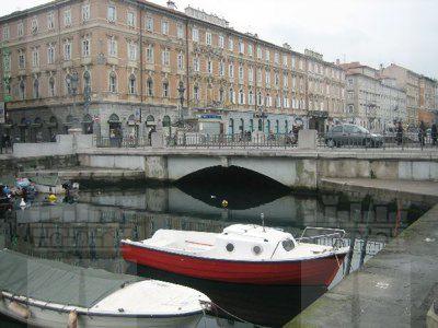 La zona delle antiche saline, a ponente delle mura della città medievale, demolite, per volere dell'imperatrice Maria Teresa d'Austria nel 1749, cominciò ad essere bonificata già a partire dagli inizi del XVIII secolo. Il progetto del suo totale interramento si concretizzò a metà del 1700, allorquando la sovrana cedette al Comune di Trieste i fondi su cui erigere la futura città che, in suo onore, fu chiamata "Teresiana". Il vasto terreno paludoso, nel suo tratto prospiciente il mare, era attraversato all'epoca da tre canali di diversa ampiezza: uno, detto del Vino o Piccolo, lungo un centinaio di metri ed interrato per motivi igienici nel 1816, si inoltrava dentro Piazza della Borsa spingendosi fino al cuore di Piazza Vecchia attraverso l'odierna Portizza. Uno medio, corrispondente, all'incirca, all'attuale canale che dalla chiesa di S. Antonio Nuovo conduceva fino al mare e che accoglieva le acque di due torrenti ed infine un terzo, più corto degli altri due. Tutti e tre questi canali erano accessibili alla navigazione di piccolo cabotaggio a servizio delle saline. Allorquando si stabilì di bonificare l'area, per permettere alla città di espandersi territorialmente in virtù della sua crescita demografica, si prese in considerazione il progetto di interrare il più piccolo allargando invece il medio, rendendolo agibile a bastimenti di stazza maggiore e conservando pure quello del Vino per imbarcazioni minori. Per ordine di Maria Teresa, il 14 ottobre 1756, il Canal Grande, l'unico, di fatto, rimasto, venne ampliato e dotato di sponde murate sotto la direzione dell'arch. Matteo Pirona al costo di 90.000 fiorini. Inizialmente lungo le sponde furono piantati degli alberi, successivamente tolti per probabili motivi di ordine pratico, intralciando, con la loro presenza, le operazioni di ormeggio nonché quelle di carico e scarico delle navi. Largo 28,4 metri, il corso d'acqua era attraversato da due ponti di ferro mobili: il cosiddetto Ponte Verde, all'imboccatura del canale, posizionato nel 1858 e il più noto Ponte Rosso, che metteva in comunicazione l'omonima piazza con l'allora Via delle Poste, collocato nel 1831 ed eseguito nelle officine dei fratelli Strudthoff in sostituzione di uno di legno di colore rosso appunto. L'enorme quantità di terra ricavata dall'ampliamento del canale servì invece da basamento per un terrapieno utilizzato per piccoli scambi commerciali in prossimità del ponte. Fu proprio quel terrapieno a trasformarsi nella futura Piazza del Ponte Rosso. Lo spazio fu regolarizzato e concepito nelle sue forme architettoniche da Gianantonio Tognana già nel 1776, derivando il suo appellativo proprio dal colore del ponte che costituiva il passaggio obbligato tra la città vecchia e quella nuova. La sua posizione strategica, prospiciente il punto di approdo delle navi e al crocevia di importanti vie di comunicazione, rese la piazza uno dei punti di incontro più dinamici dal punto di vista commerciale e mercantile, divenendo ben presto sede di un vivace mercato ortofrutticolo. Piazza del Ponterosso fu, sin dalla sua iniziale creazione, un'ampia piazza quadrangolare circondata da numerosi edifici di gran pregio architettonico, le cui prime registrazioni tavolari risalgono al 1789. Tagliata a metà dall'odierna Via Roma, lo spazio presenta sul lato a settentrione una fontana a tre bocche rappresentante una rupe sul cui vertice poggia un genio fluviatile. L'opera risale al 1751 su progetto dello scultore Francesco Mazzoleni, creatore della fontana dei Quattro Continenti di Piazza Unità d'Italia. Familiarmente nota come fontana del "Giovanin", in onore del puttino che la sormonta, la fontana attingeva l'acqua direttamente dall'acquedotto teresiano fatto costruire dall'imperatrice a metà del 1700 incanalando le acque provenienti dalle alture di S. Giovanni. Ingentilivano la piazza, non solo la fontana del Puttino, ma anche un chiosco in muratura e ferro destinato ad ospitare un corpo di guardia ed alcuni gabinetti pubblici in ghisa decorata. La regolazione della contrada del Canal Grande risale al 1821, allorquando l'Ufficio delle Civiche Fabbriche approvò il progetto di lastricazione dell'area. La pavimentazione, in grossi blocchi di masegno, venne disposta a spina di pesce nella zona centrale, a correre lungo il sedime delle strade. La struttura della piazza rimase invariata nella sua sostanza fino alla metà del XX secolo. Durante lo stravolgimento della viabilità stradale negli anni '50, l'antico lastricato venne, infatti, ricoperto con un manto di asfalto. Si colse allora l'occasione per interrare i servizi igienici. Sulla piazza fanno bella mostra di sé alcuni tra i più eleganti edifici triestini come, ad esempio, la monumentale sede della Banca Nazionale del Lavoro, insediatasi dal 1928 nell'edificio costruito per il commerciante Alessandro Genel nel 1873. Oppure gli edifici posti agli angoli con Via Roma: al numero civico 3, il palazzo opera di A. Bacicchi, risalente al 1882; al numero civico 4, il fabbricato noto con il nome di casa Allodi con la sua originale torretta ottagonale risalente al 1913, progettato dall'arch. O. Sonetti e che ospitò, durante gli anni Trenta, l'Hotel Centrale.