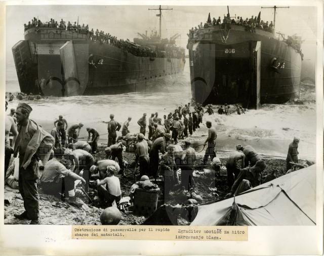 Strettamente connesso al Navy, il corpo dei Marines è divenuto uno dei punti di forza dell'apparato militare americano, specializzato nel compiere operazioni anfibie, quali sbarchi e incursioni rapide, e nel prendere parte ad ogni tipo di missione all'estero. La vittoria più emblematica del corpo durante la seconda guerra mondiale rimane quella ottenuta nella piccola isola vulcanica di Iwo Jima sul monte Suribachi, in una battaglia sanguinosa che permise di installare le decisive basi che lanciarono i bombardieri B-29 sul Giappone. Durante il conflitto bellico furono istituite le unità fotografiche da campo. Karl Thayer Soule, ufficiale fotografo prima della First Marine Division e poi della 3rd Marine Division fu a capo dell''unità fotografica da campo che partecipò anche alla spedizione di Iwo Jima (e per cui vinse la Bronze Star). Nel Fondo USIS sono presenti diverse fotografie del Corpo dei Marine. La didascalia su cartiglio incollata sul verso spesso si limita a rivelare il nome dell'agenzia fotografica di provenienza, non il nome del fotografo. In taluni casi, il confronto con le foto presenti nell'Archivio NARA consentono di identificare l'autore.