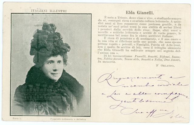 "Filippo Orlando, che si travaglia infaticabilmente di dare alla luce e di rendere popolari in ogni guisa, e anche colle sue cartoline illustrate, i nomi e gli scritti dei nostri autori antichi e moderni, nonchè le vite d'altri che operarono col senno e con la mano."