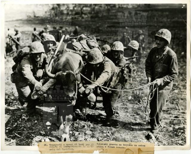 Strettamente connesso al Navy, il corpo dei Marines è divenuto uno dei punti di forza dell'apparato militare americano, specializzato nel compiere operazioni anfibie, quali sbarchi e incursioni rapide, e nel prendere parte ad ogni tipo di missione all'estero. La vittoria più emblematica del corpo durante la seconda guerra mondiale rimane quella ottenuta nella piccola isola vulcanica di Iwo Jima sul monte Suribachi, in una battaglia sanguinosa che permise di installare le decisive basi che lanciarono i bombardieri B-29 sul Giappone. Durante il conflitto bellico furono istituite le unità fotografiche da campo. Karl Thayer Soule, ufficiale fotografo prima della First Marine Division e poi della 3rd Marine Division fu a capo dell''unità fotografica da campo che partecipò anche alla spedizione di Iwo Jima (e per cui vinse la Bronze Star). Nel Fondo USIS sono presenti diverse fotografie del Corpo dei Marine. La didascalia su cartiglio incollata sul verso spesso si limita a rivelare il nome dell'agenzia fotografica di provenienza, non il nome del fotografo. In taluni casi, il confronto con le foto presenti nell'Archivio NARA consentono di identificare l'autore.