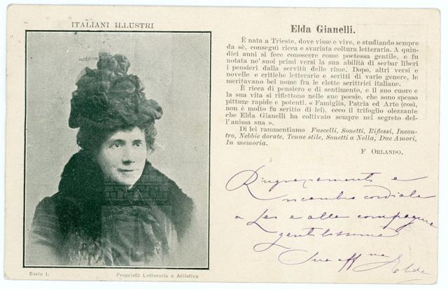 "Filippo Orlando, che si travaglia infaticabilmente di dare alla luce e di rendere popolari in ogni guisa, e anche colle sue cartoline illustrate, i nomi e gli scritti dei nostri autori antichi e moderni, nonchè le vite d'altri che operarono col senno e con la mano."