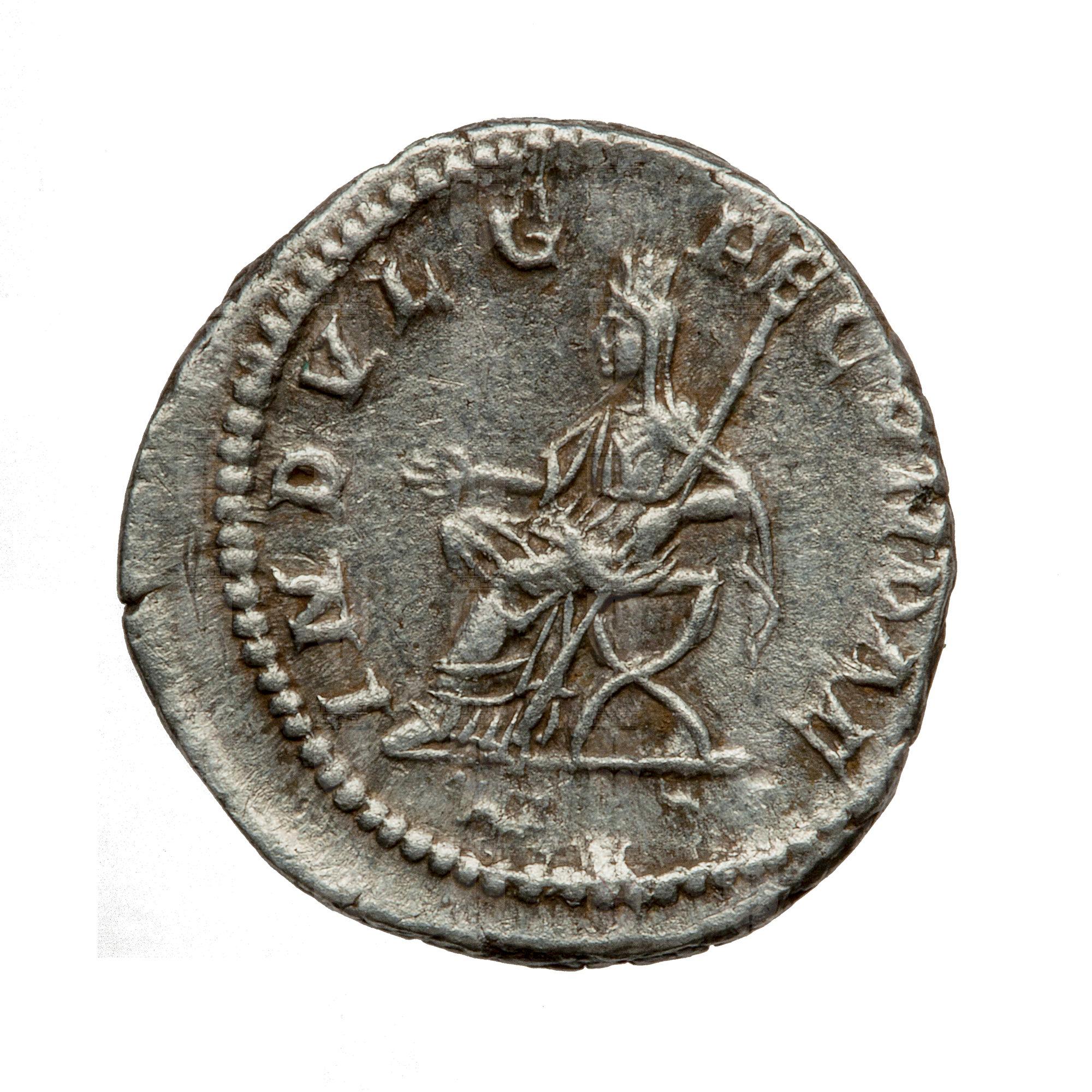 Denario con testa di Caracalla / Personificazione dell'Indulgenza feconda