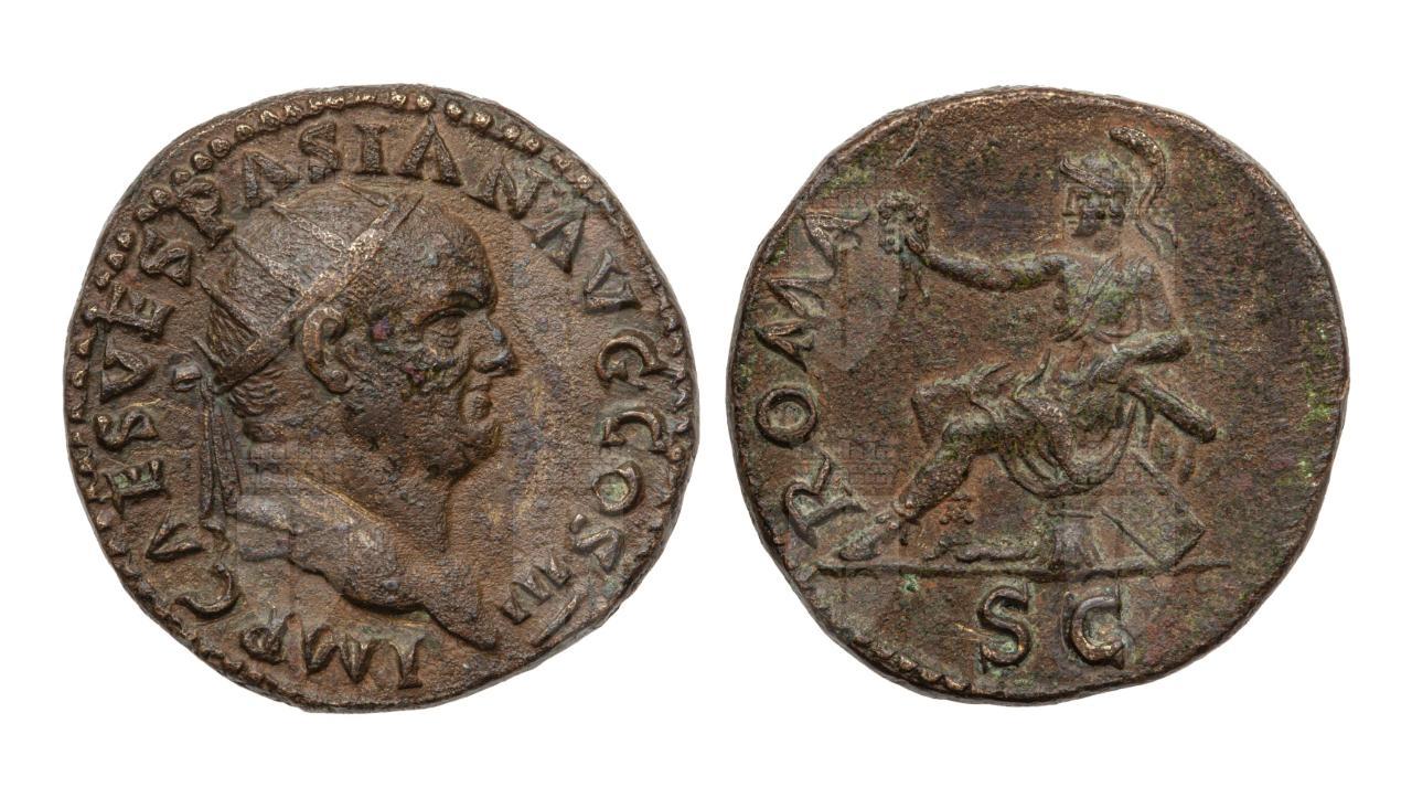 Dupondio con testa di Vespasiano / Personificazione di Roma