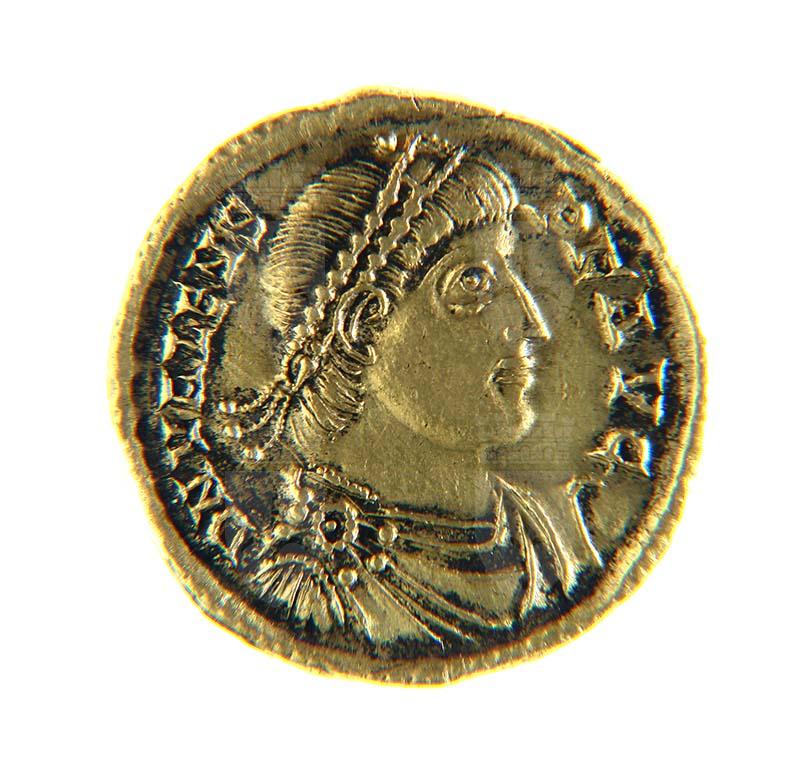 Testa dell'imperatore a destra; DNVALENS PFAVG