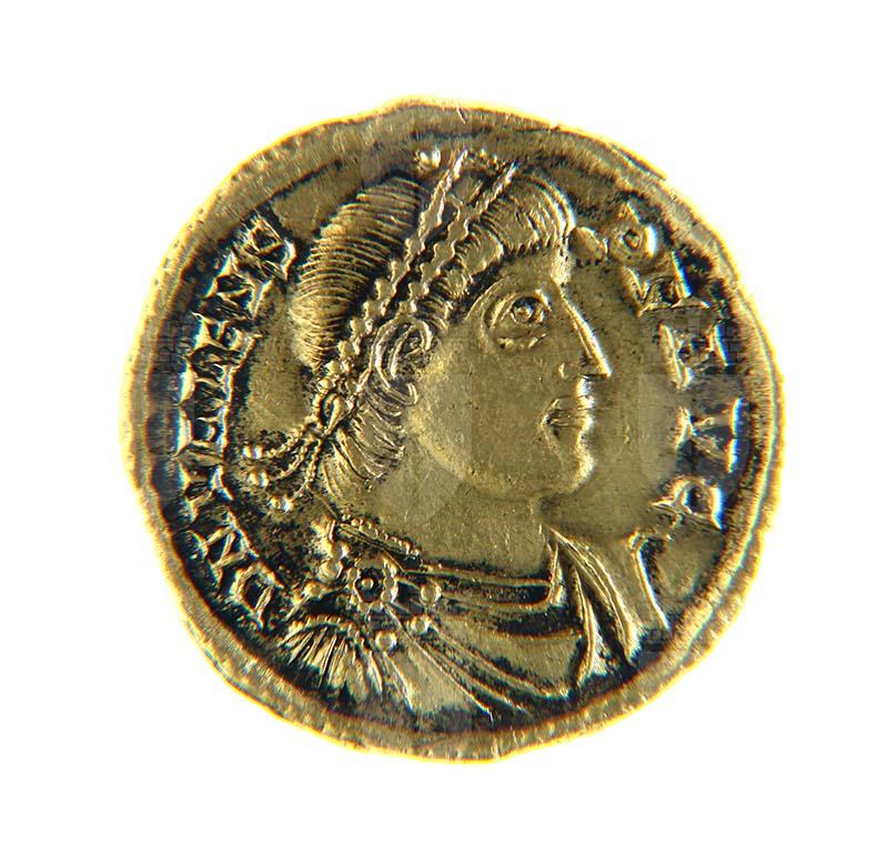 Testa dell'imperatore a destra; DNVALENS PFAVG