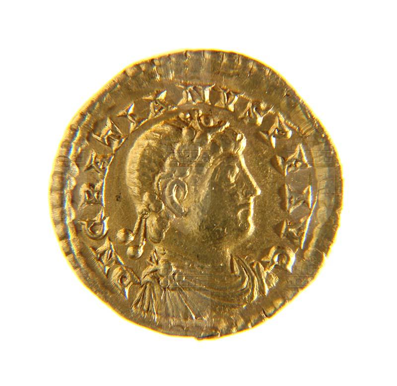 Graziano e Valentiniano assisi; VICTOR IAAVGG, in esergo TROBS