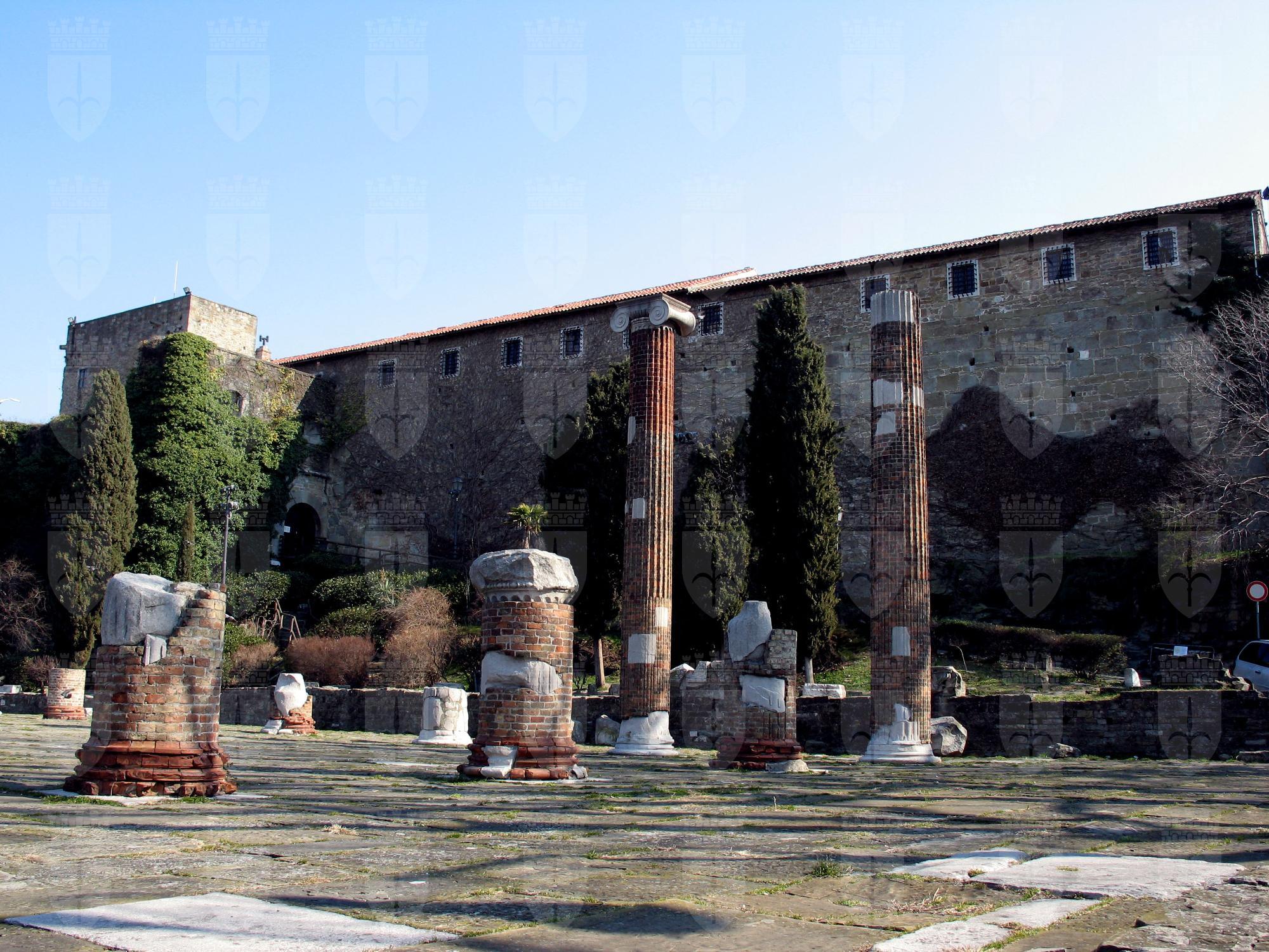 Il Castello di San Giusto si erge sul colle che domina Trieste, il suo golfo e il suo entroterra. La costruzione della fortezza, voluta dagli imperatori d’Austria – cui nel 1382 la città aveva affidato le proprie sorti – per proteggere e controllare la città e per dare alloggio al Capitano imperiale, si protrasse dal 1468 al 1636. L’edificazione ebbe inizio con la Casa del Capitano – un’abitazione fortificata affiancata da una torre a “L” –, successivamente inglobata in una fortezza triangolare munita ai tre vertici di bastioni: il Bastione Rotondo o Veneto del 1508-1509; il Bastione Lalio o Hoyos, dalla forma poligonale, del 1553-1557; il triangolare Bastione Fiorito o Pomis, completato nel 1636. Attraversato il ponte levatoio, nell’ampio vestibolo si trovano le statue di Michez e Jachez, i due grandi automi batti-ore ottocenteschi provenienti dall’orologio del palazzo municipale di Trieste in piazza dell’Unità d’Italia, e il cosiddetto Melone, manufatto in pietra di probabile epoca romana divenuto uno dei simboli della città.All’interno del Castello sono ospitate due importanti sezioni dei Civici Musei di Storia ed Arte: il Civico Museo del Castello di San Giusto-Armeria e il Lapidario Tergestino al Bastione Lalio. Il Civico Museo del Castello di San Giusto-Armeria occupa gli ambienti quattro-cinquecenteschi della Casa del Capitano. Al piano terra accoglie il visitatore la tardogotica cappella di San Giorgio. Al primo piano del museo si apre la sontuosa Sala Caprin, che accoglie arredi, sculture e dipinti - di ambito veneto e databili tra il ’500 e il ’700 - appartenuti a Giuseppe Caprin (Trieste 1843-1904), illustre giornalista, storiografo, editore e patriota triestino. Al secondo piano, nei camminamenti di ronda al coperto, trova spazio l’Armeria: armi in asta (alabarde, partigiane, corsesche, falcioni), spade, pugnali e baionette, balestre, spingarde, fucili e pistole tracciano l’evoluzione dell’armamento in Europa dal Medioevo all’Ottocento.Nel Lapidario Tergestino al Bastione Lalio l’esposizione è incentrata sulla ricostruzione della storia e dell’aspetto di Tergeste romana, tramite 130 monumenti lapidei provenienti dall’area capitolina, dagli edifici sacri, dal Teatro e dalle necropoli.