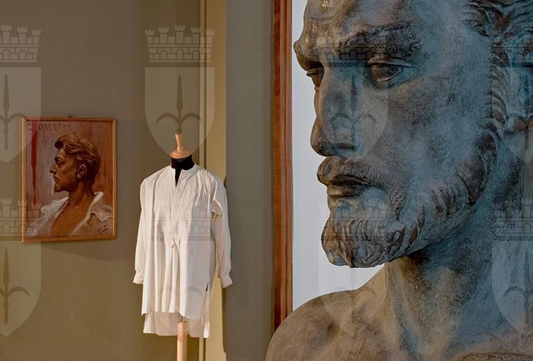 Il Civico Museo del Risorgimento e Sacrario Oberdan sorge sull‘area che aveva accolto la caserma austriaca, di impianto settecentesco, dove il 20 dicembre 1882 venne giustiziato Guglielmo Oberdan (Trieste 1858-1882) accusato di alto tradimento e di aver voluto attentare alla vita dell‘imperatore Francesco Giuseppe: nel sacrario, edificato contestualmente al Museo e ad esso adiacente, il complesso statuario eseguito dallo scultore Attilio Selva (Trieste 1888-Roma 1970) e la cella originale dove Oberdan fu tenuto prigioniero in attesa del supplizio ricordano la figura e l‘uccisione del martire triestino. Il Museo del Risorgimento conserva documenti, fotografie, divise, opere d‘arte e cimeli relativi a fatti e a personaggi delle vicende risorgimentali non solo locali, a partire dai moti del 1848 fino alla conclusione della Prima guerra mondiale quando Trieste entrò a far parte del Regno d’Italia. Una sezione è dedicata ai garibaldini giuliani, anche a quelli che parteciparono alla guerra greco-turca del 1897. Lettere, effetti personali, immagini e ritratti delineano esaurientemente la personalità e le vicissitudini di Oberdan. Dominano il grande salone centrale, dedicato ai Volontari giuliani e dalmati per ognuno dei quali è leggibile una breve nota biografica, gli affreschi di Carlo Sbisà (Trieste 1899-1964) nei quali le città redente di Trieste, Aquileia, Gorizia, Fiume, Zara, Pola e Parenzo sono rappresentate allegoricamente da mezzi busti femminili. Unica con il capo velato di nero è Spalato irredenta, mentre la sola figura intera è quella di Madre Italia. Sono divenuti parte integrante del percorso espositivo tutti gli oggetti e i documenti selezionati per la mostra del 2012 „Oberdan Nordio. Materiali per due anniversari“. Si tratta di beni, documenti e fotografie i quali narrano le vicende che hanno portato al compimento della Casa del Combattente e del Museo del Risorgimento, due realtà architettoniche unite in un‘unica struttura nel cuore della città.