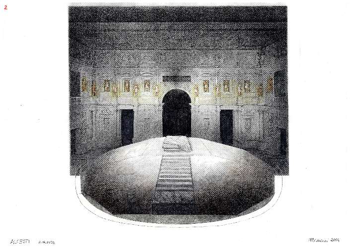 Assassinio nella Cattedrale di Ildebrando Pizzetti. Scenografia per l'atto 1.