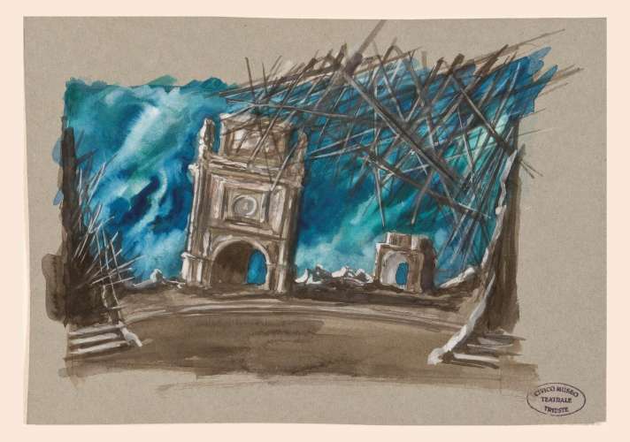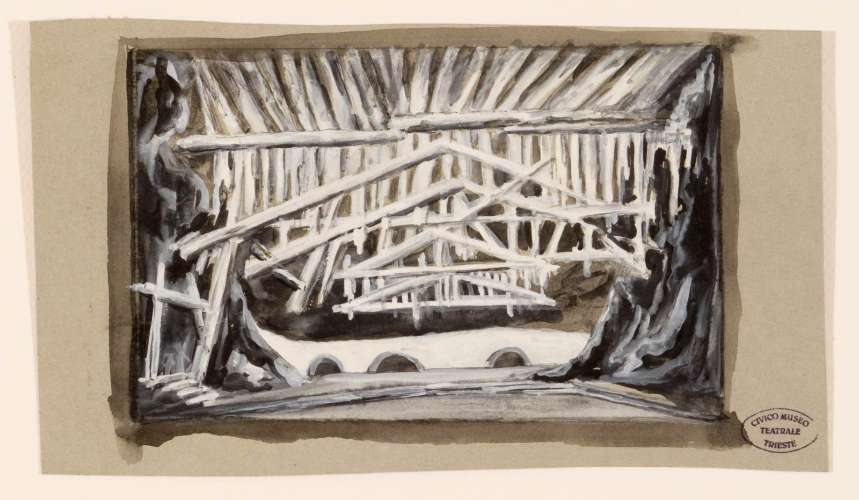 Otello, opera di Giuseppe Verdi, atti I e II. Fondale per cielo e mare