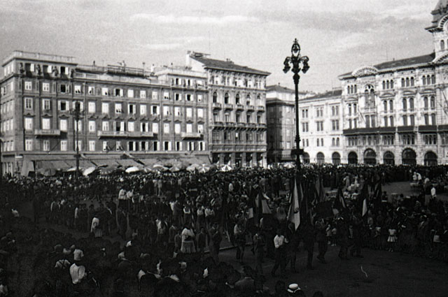 Monsignor Santin e Vittorio Vidali (PCI) sul palco autorità