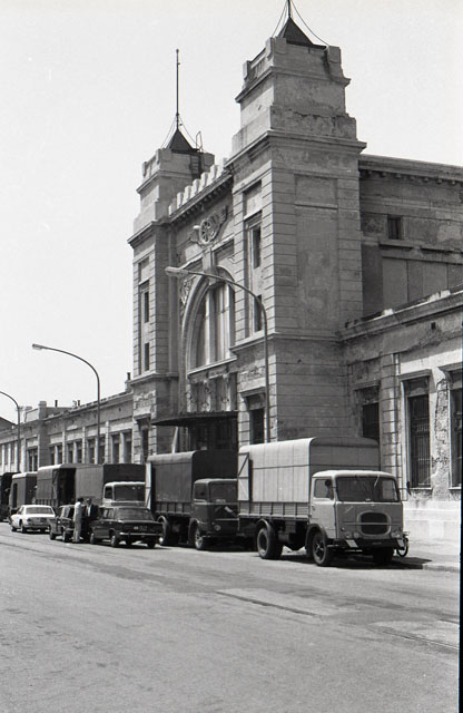 Esterno edificio (stazione?) ; cicli e moto abbandonati