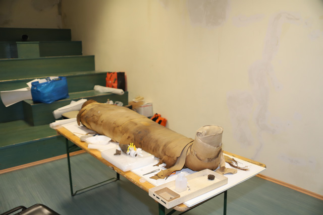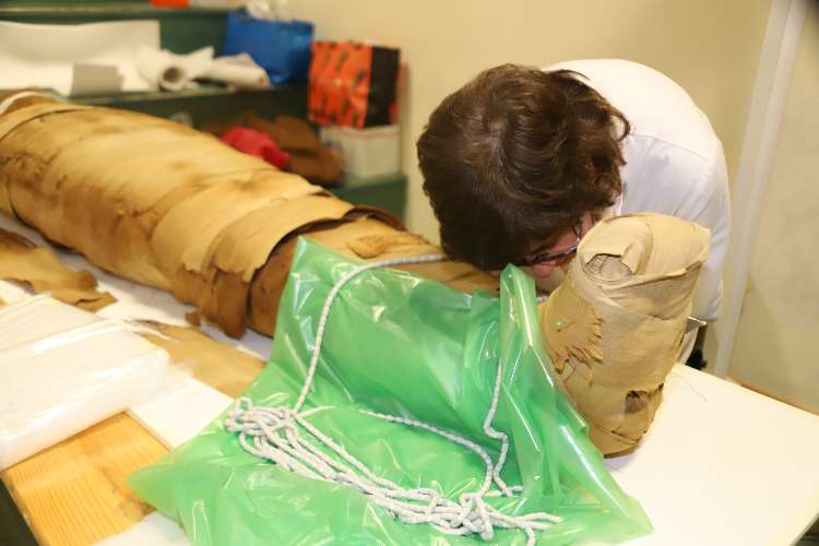 Inizio lavori di restauro di una mummia del Museo d'Antichità J.J. Winckelmann