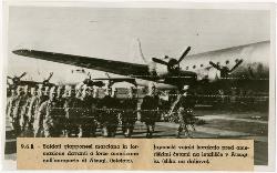 Japanese soldiers are shown marching in formation past american forces on Atsugi airport in Japan