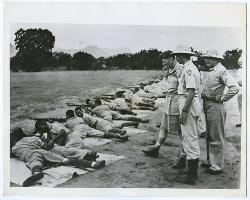 Cina : un ufficiale americano istruisce i soldati cinesi nell'impiego di un mortaio fornito dagli Stati Uniti per le operazioni contro i giapponesi